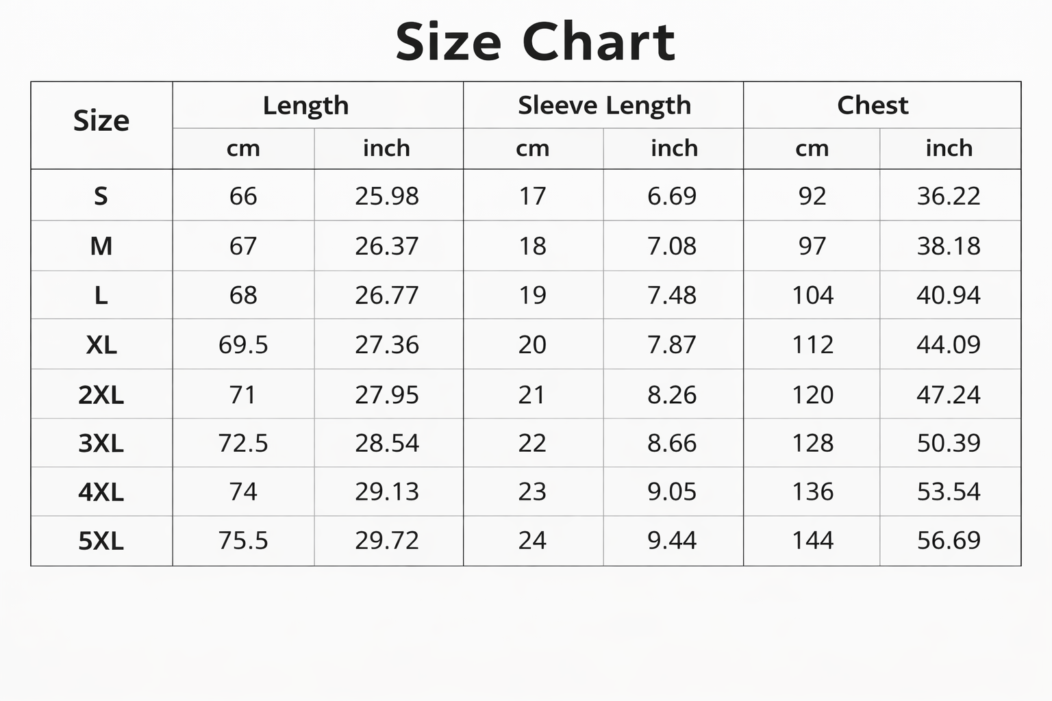 Our size chart is designed to fit all body shapes and sizes.We offer a wide range of sizes to ensure a comfortable and flattering fit for everyone.