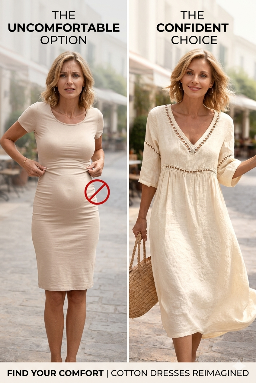 Step into effortless elegance with this retro-inspired cotton dress, designed for comfort, simplicity, and everyday style.